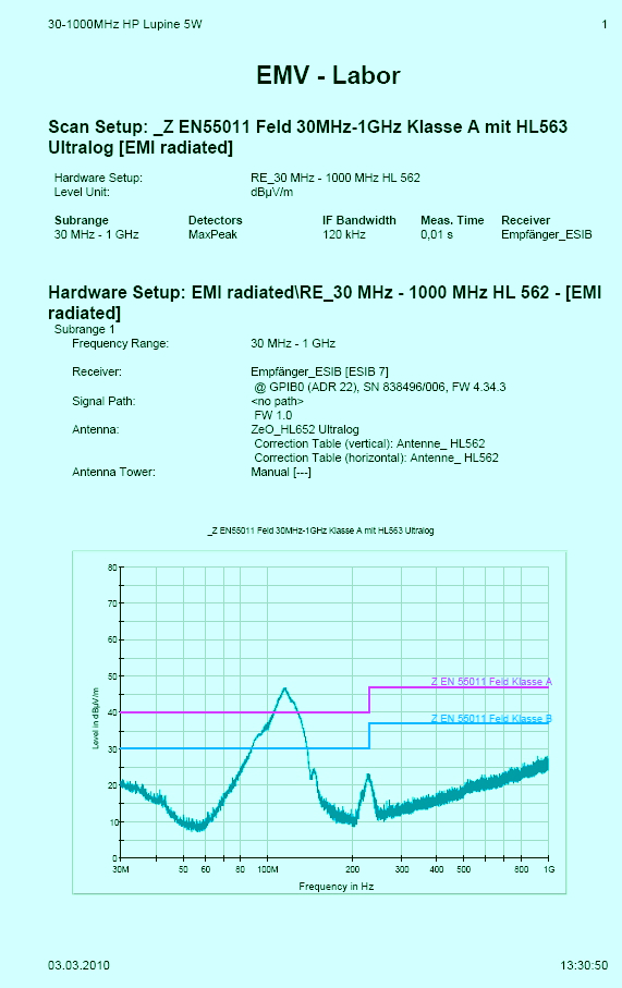 Die Grenzkurven kommen aus der Technik. Klasse A für industriell genutzte Produkte B für private. Gemessen wurde im Abstand von 2,8m.