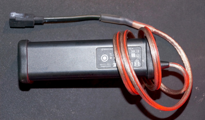 Ich habe auch selber ein dickes Kabel in der richtigen Länge (1m) direkt am Akku angelötet: