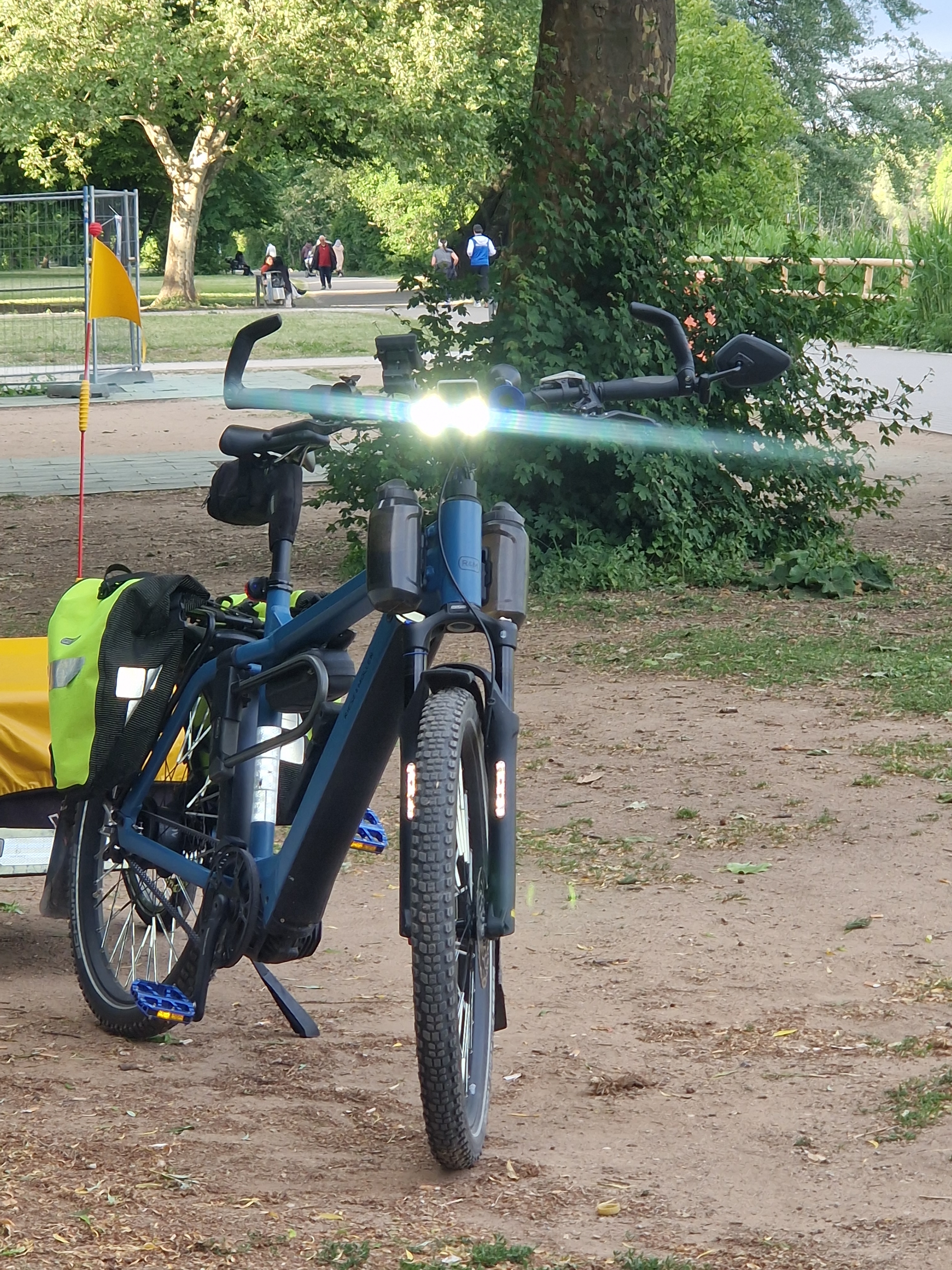 Tatsächlich fühlen sich entgegenkommende Menschen davon geblendet und mir ist die Situation peinlich, wenn wegen meiner Beleuchtung die Leute schützend ihren Blick zur Seite abwenden, oder die Hände nutzen um nicht geblendet zu werden.