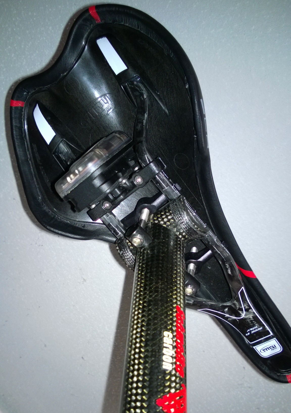 Der Sattel hat an der Rückseite einen ziemlichen Aufbau an dem die Dampfergummis eingehängt werden,die Sattelstütze hat am rückwärtigen Ende eine rausstehende Nase zur Verstärkung der Schraubenaufnahme,so,mit dieser Kombi reicht mein Verstellweg des Sattel nach vorne um ein paar mm nicht aus weil das Rotlicht am Sattelende ansteht.
