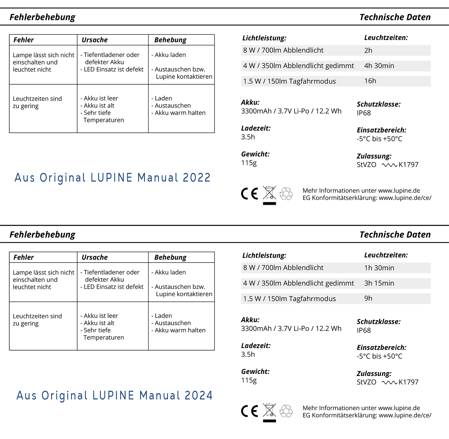 Re: LUPINE SL Mono, deutliche Reduzierung der Leuchtdauer, Minus 25 - 45%, 2024 vs. 2022