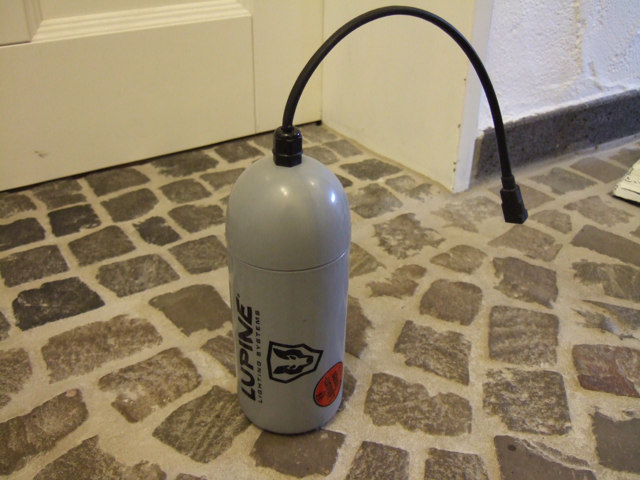 Verkaufe optisch u. technisch gute Akkuflasche + Akku. Es handelt sich um den original Lupine Li-Ionen Akku mit 9,0 Ah. Der Akku wurde wenig genutzt (alles in Allem 25 mal) u. zeigt bei Neuladung von verschiedenen Modellen immer noch 8,5 Volt Spannung an. Leuchtzeiten bei einer 17 Watt Wilma auf Vollgas um ca. 20 min reduziert. Bei Halbgas um ca. 10 min. Steht also noch gut im Saft.