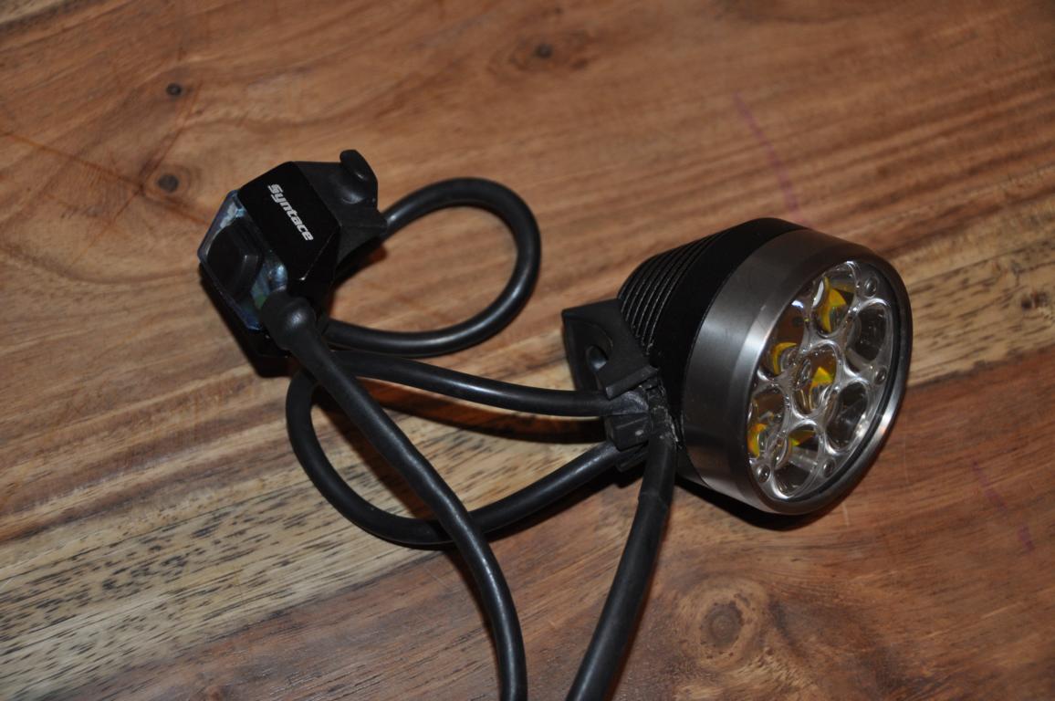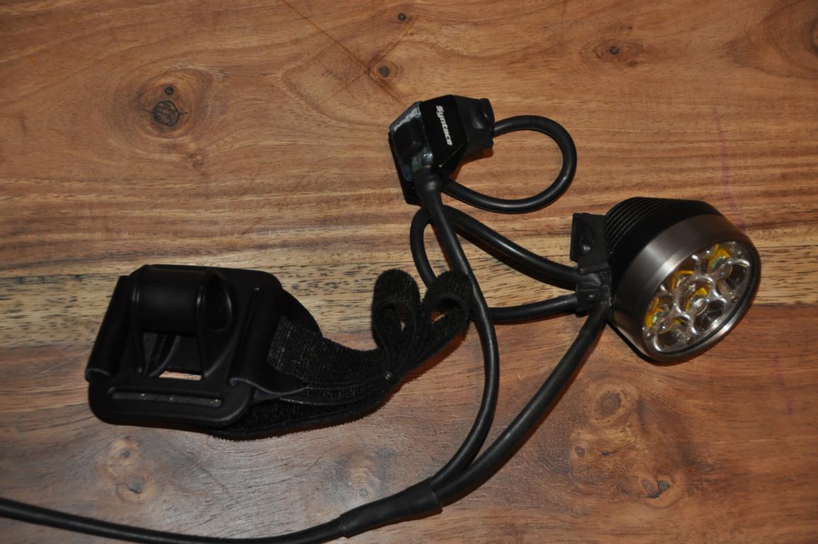 Der Lampenkopf kommt mit Helmhalter und einem externen Schalter, den man am Lenker wunderbar als Fernbedienung benutzen kann.