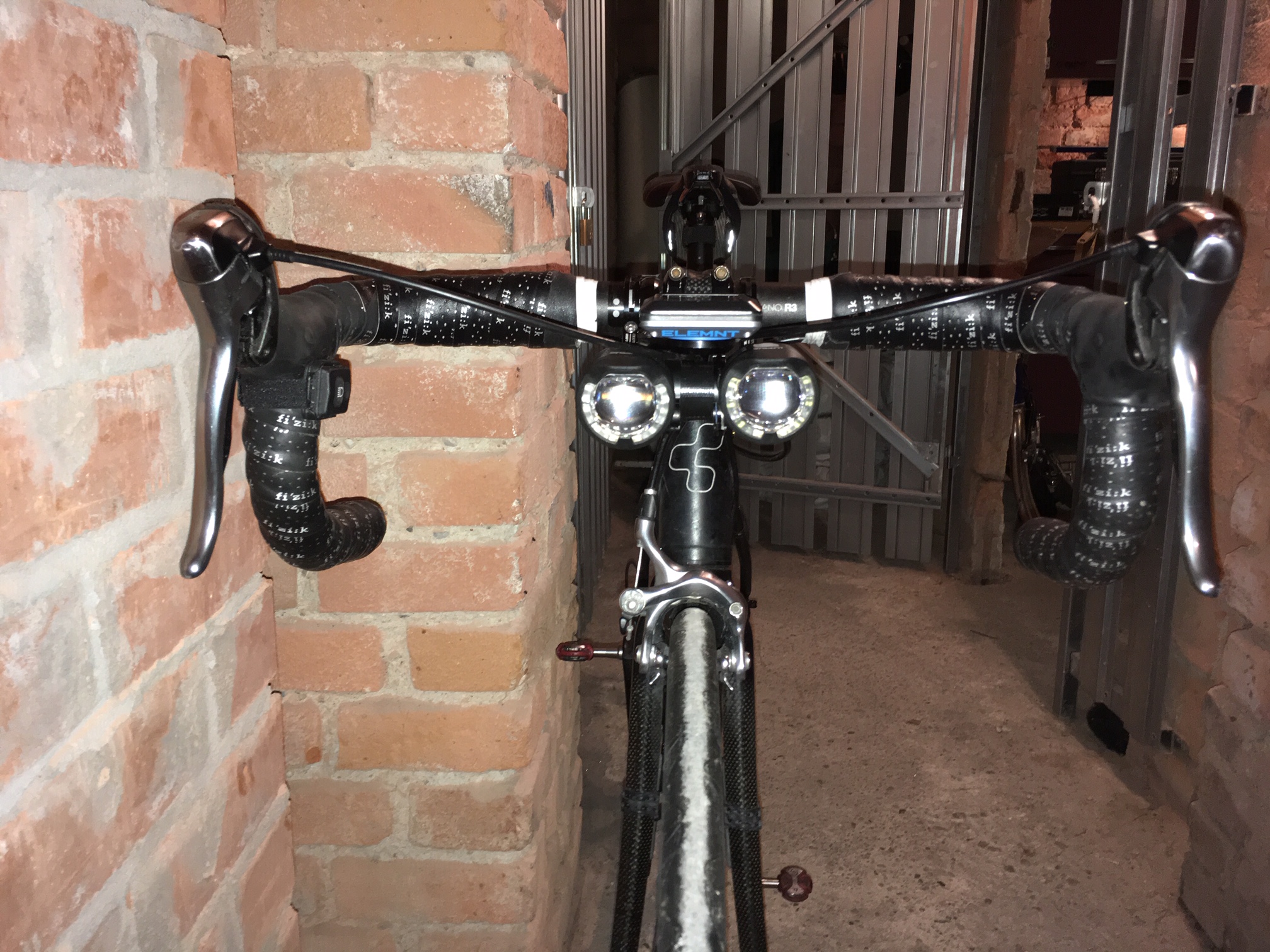 So, heute habe ich dann endlich auch mal mit der Lupine trainieren dürfen. Bisher war ja nur pendeln angesagt. Am Winter Trainingsgerät habe ich sie neben den Garmin montiert, da hier das Hochstellen des Garmin ein No-Go ist, weil ich mich dann nicht in der Aero Position auf den Lenker legen kann.