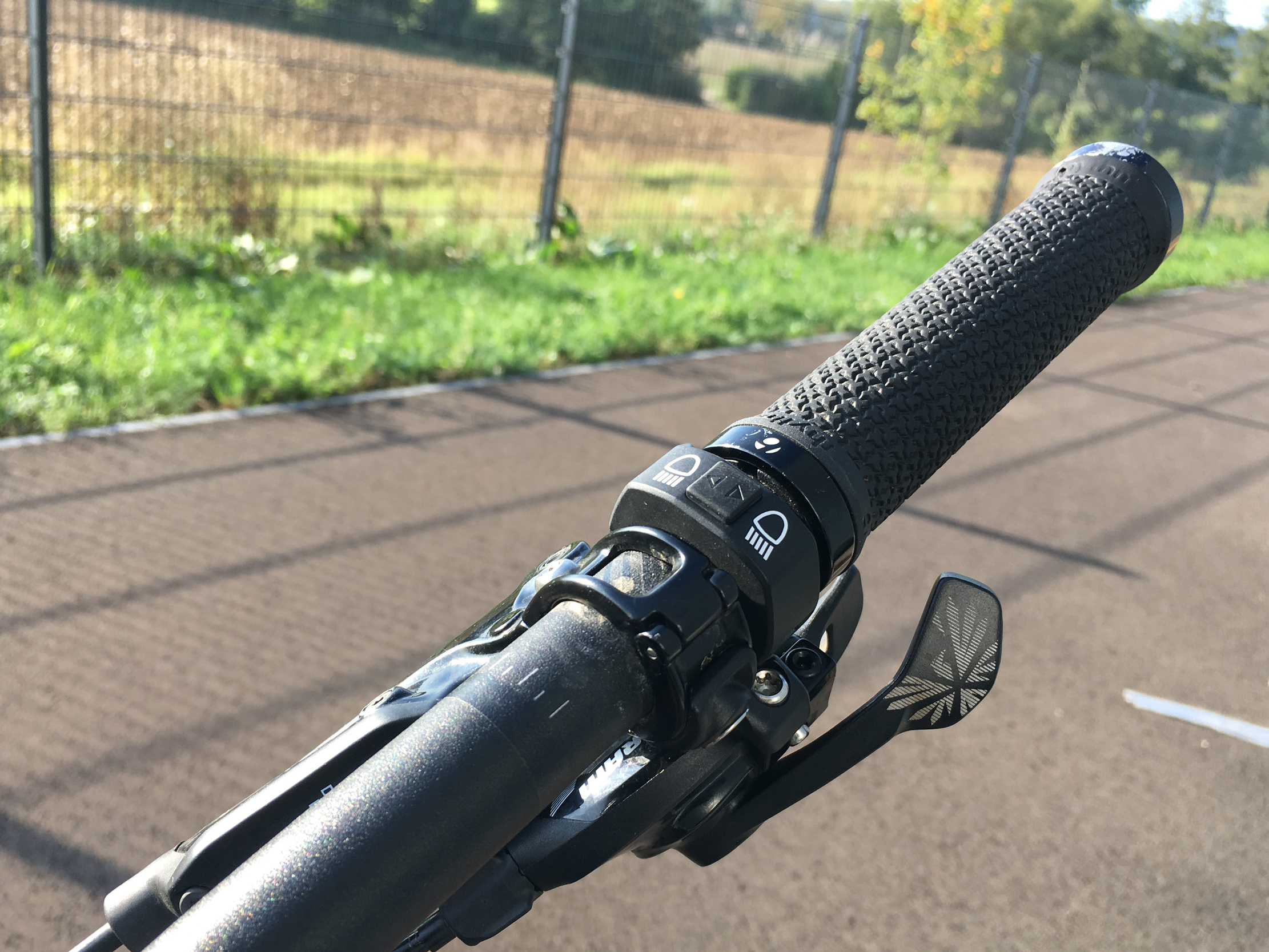 Hier mal ein Bild des kabelgebundenen Tasters inkl. montierter SL AF (Prototyp) am Lenker: