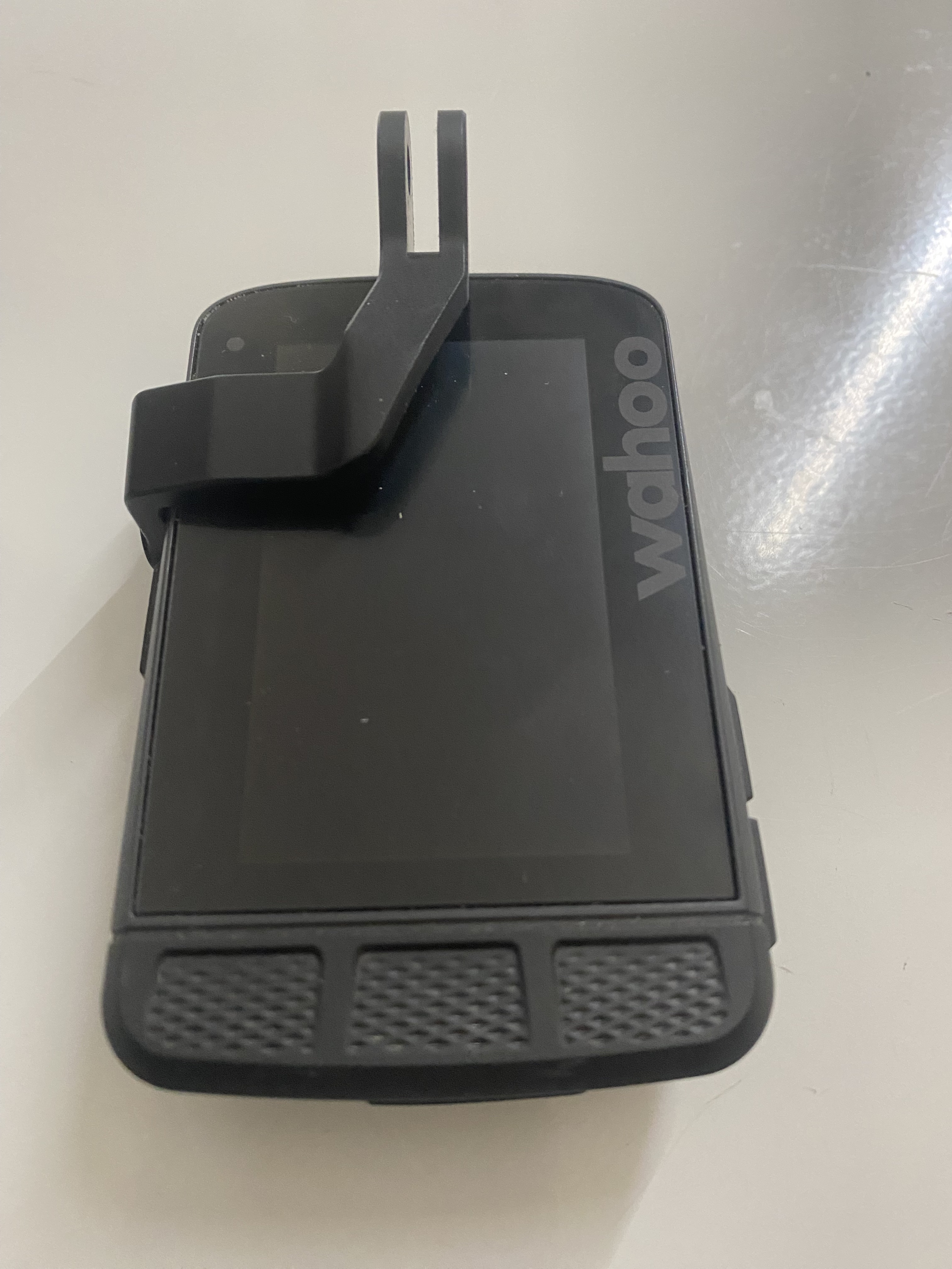 Die Breite der Mini Max, wenn ich den GoPro Adapter an einen Wahoo Roam anlege, entspricht dem Roam bis auf ein paar mm + (Display-Seite).