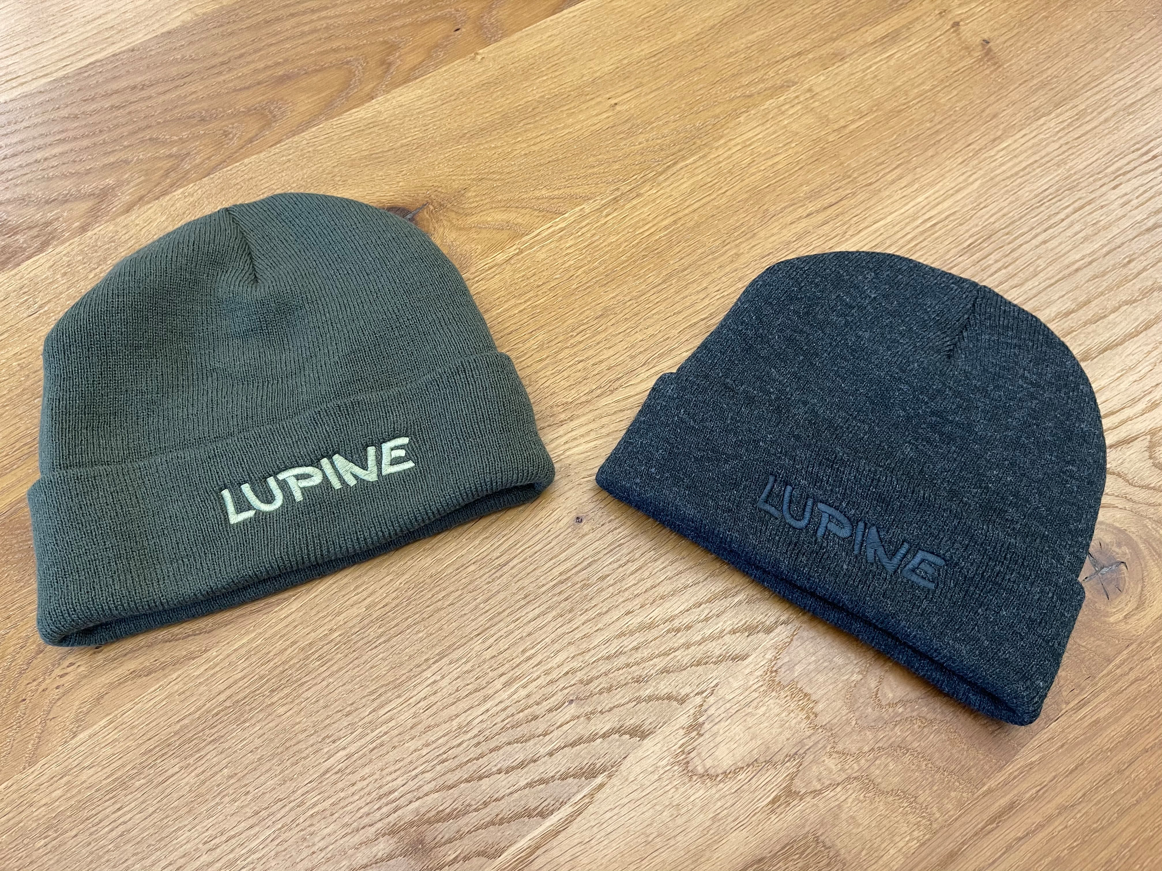 Zur Kälteabwehr oder auch als kleines Weihnachtsgeschenk haben wir dieses Jahr zwei verschiedenfarbige Mützen aus Mikrofaser aufgelegt. Einmal in olivgrün mit grünem Lupine-Schriftzug oder klassischem Grau mit dunkelgrauem Stick.