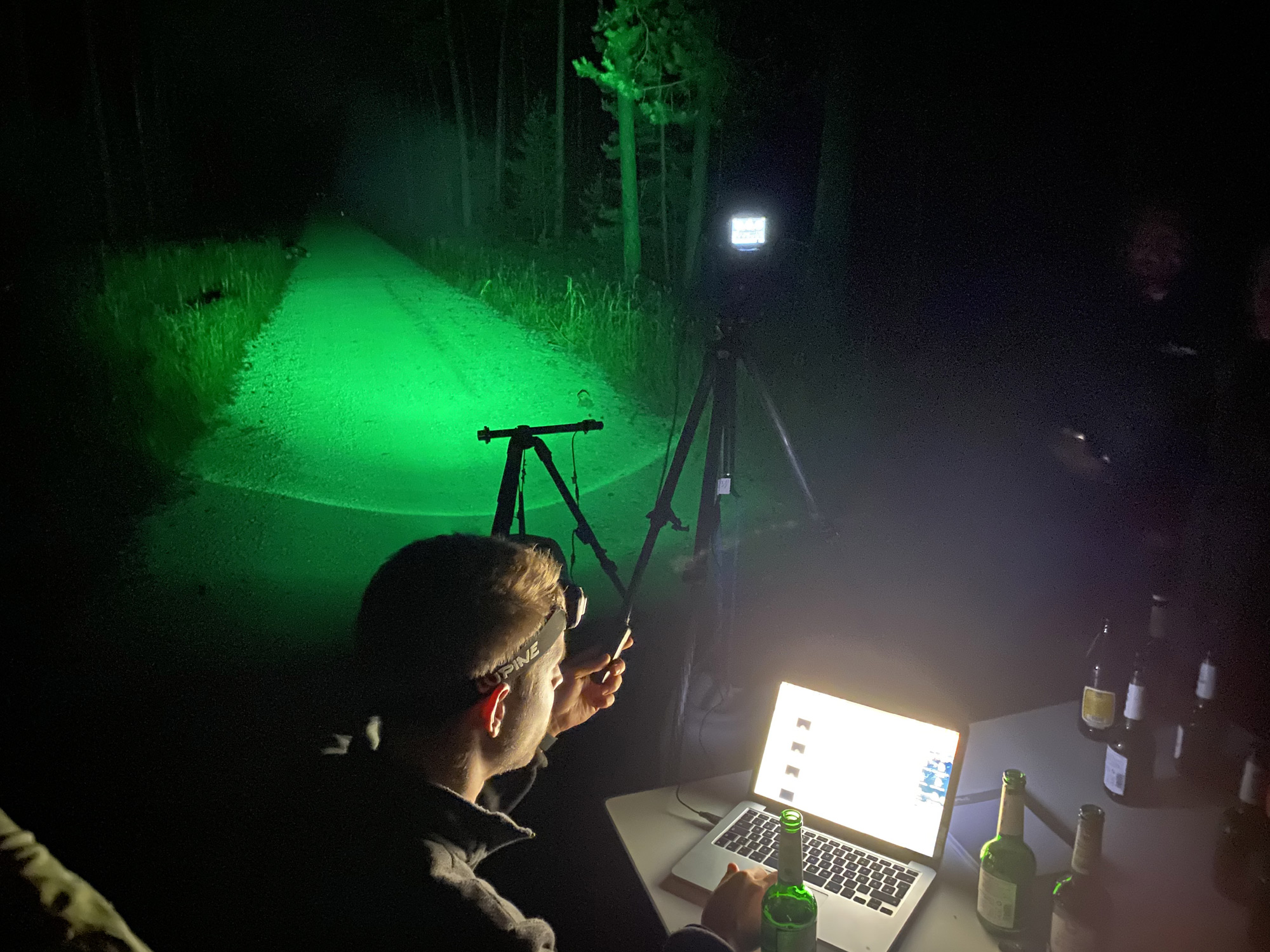 Entweder ist es ganz anders oder der Rasenmäher qualifizierte sich als optimales Stativ zur Lampenmontage.