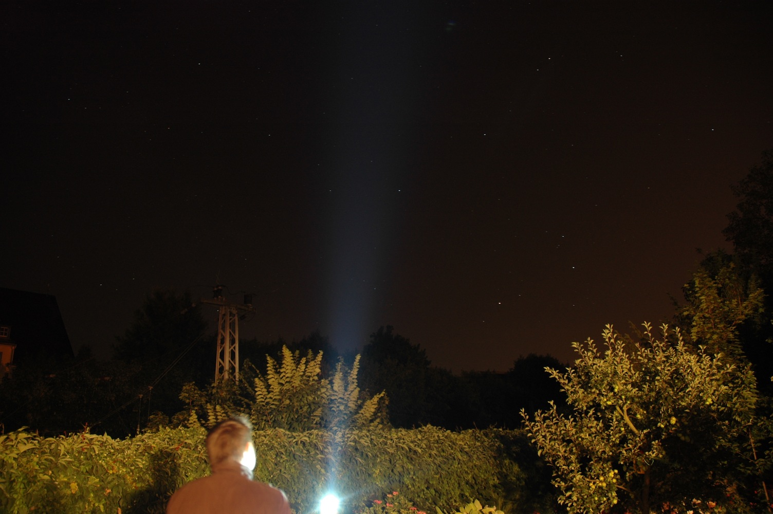 Aber ich bin schon gespannt wie sich die breite Linse bei der Zeltstangenmontage macht. Das hört sich alles vielversprechend an. Und bis wir endlich die neuen Ausleuchtbilder (Ich bin schon sehr gespannt was da alles kommt) sehen hier mal ein kleines Spaßfoto zur Abwechslung von mir. Das Lichtschwert ist auch mit bloßen Auge bei Ausleuchtung des Himmels sichtbar.