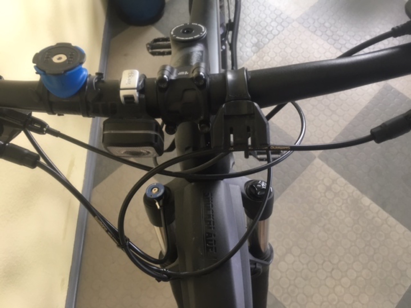 .... und es geht mit den Schnellspannern zusätzlich auch links oder rechts seitlich des Vorbaus, ohne dass die Kabel ernsthaft im Weg sind.