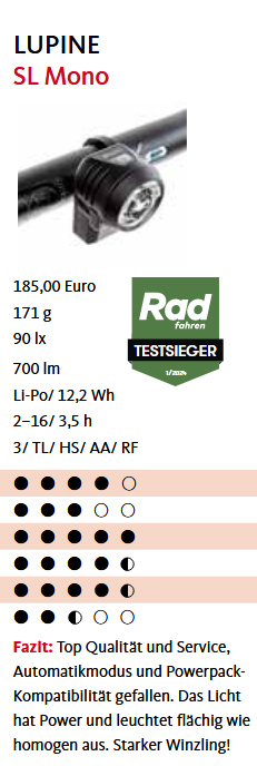 In der aktuellen Radfahren taucht die SL MiniMax und auch die SL Mono auf. Natürlich mit positivem Ergebnis, sonst würde ich es ja hier nicht