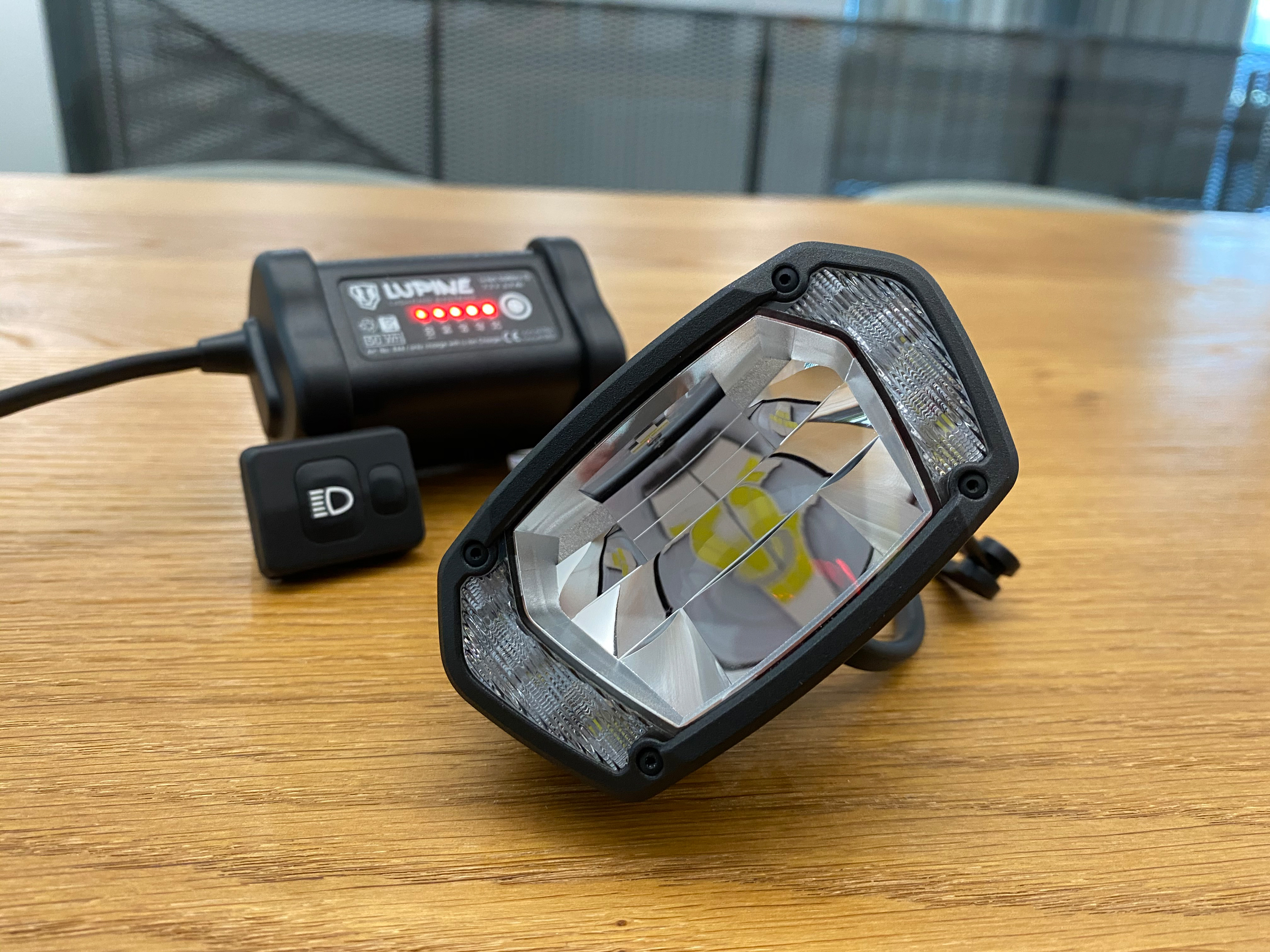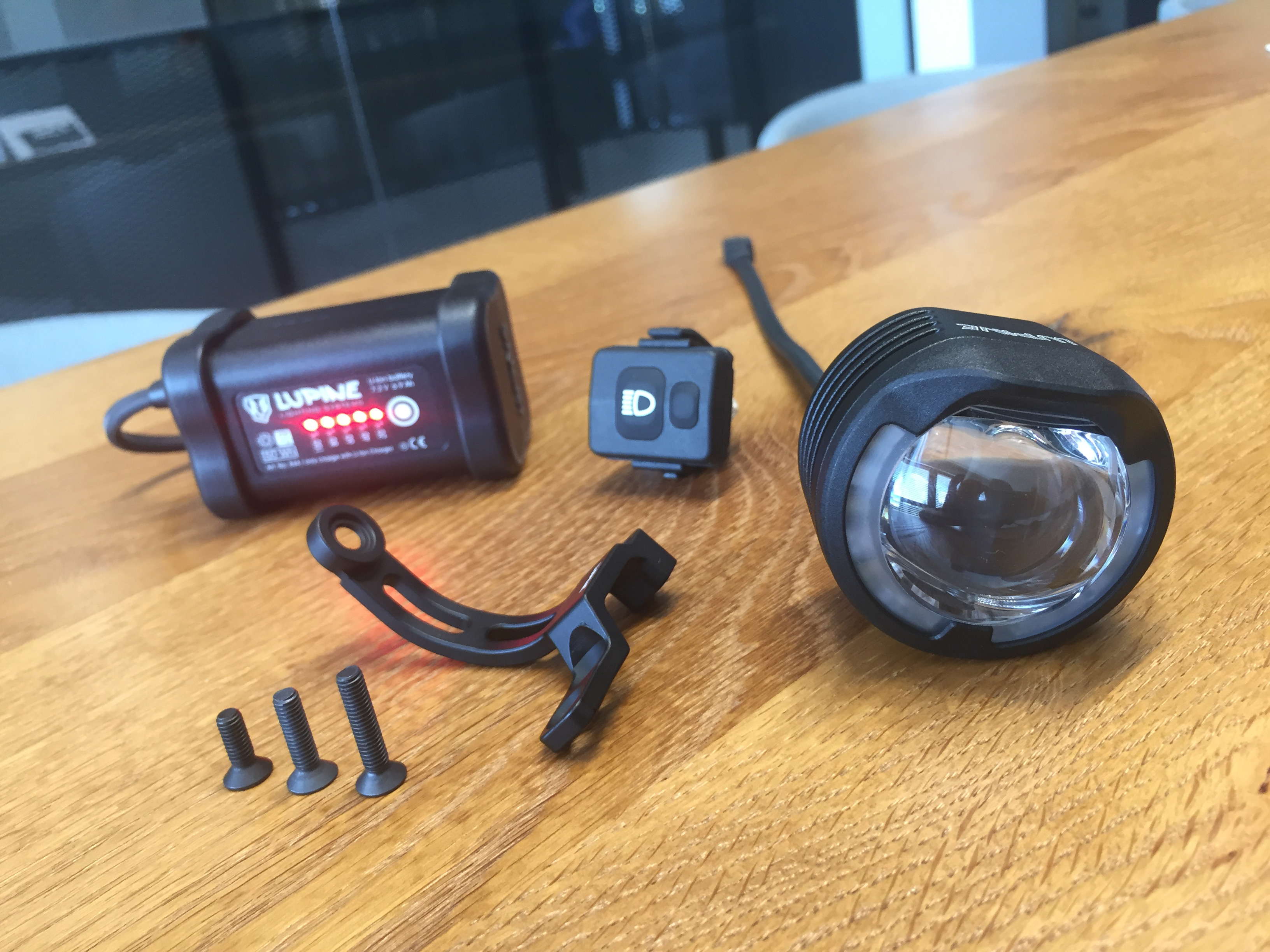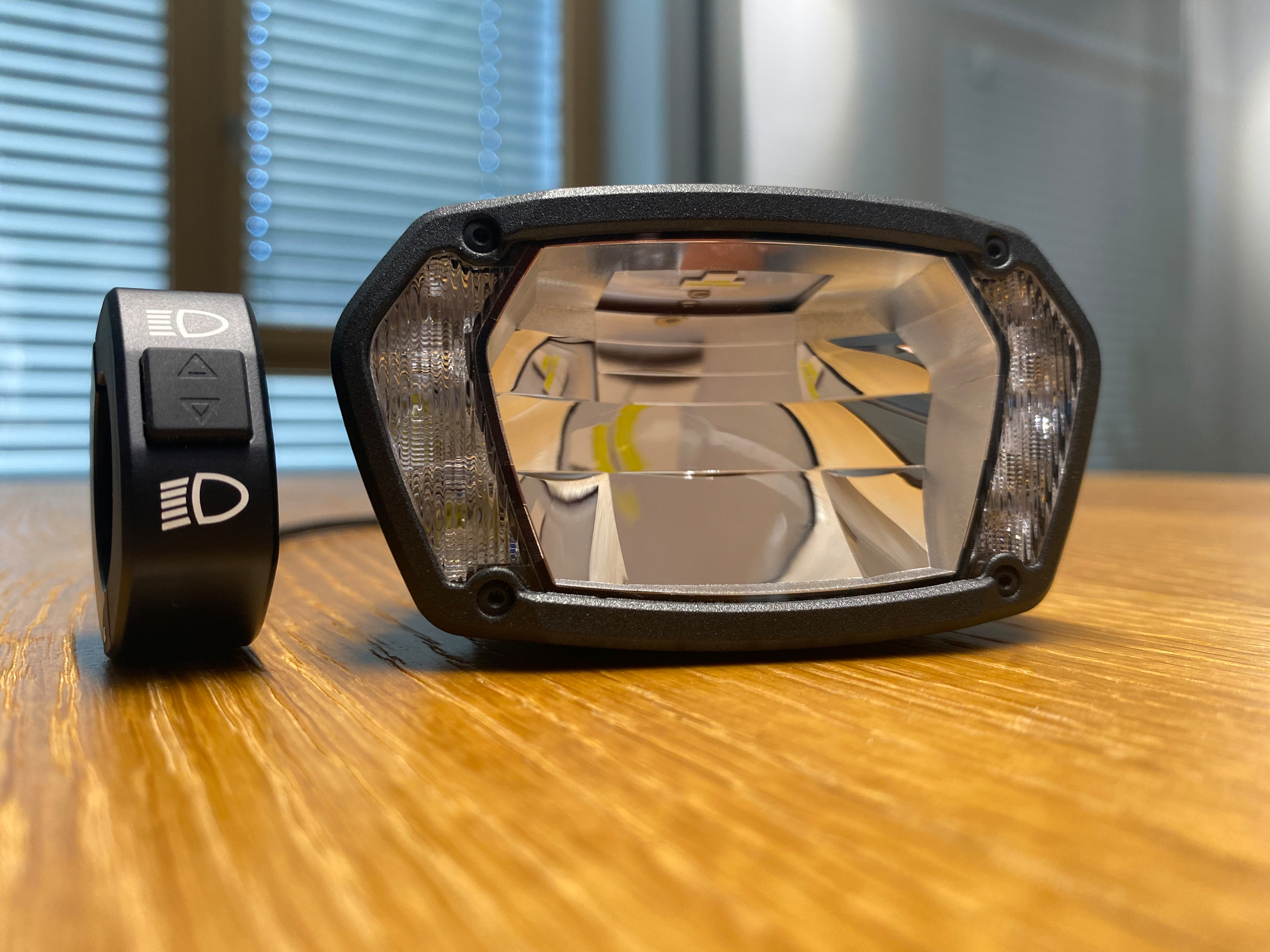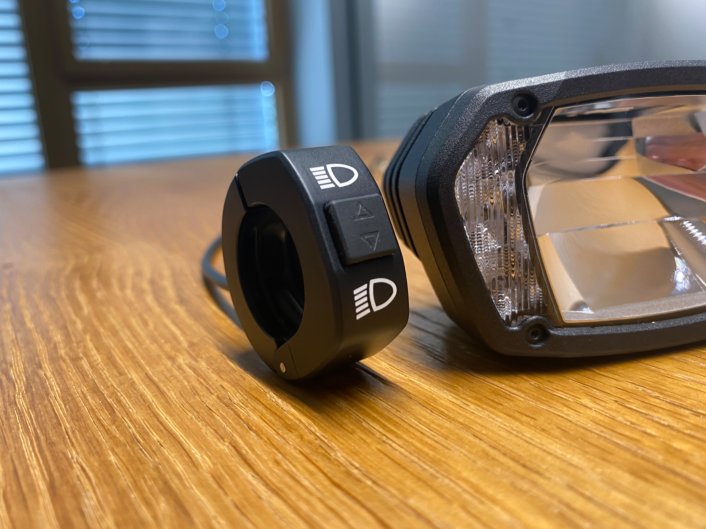 Die SL X gibt es seit heute auch als 36V-Variante für S-Pedelecs. Grundsätzlich handelt es sich hier um die selbe Lampe: Reflektor-Fresnel-Kombi, Tagfahrlicht, Abblendlicht und Fernlicht die per kabegebundener Fernbedienung gesteuert werden. Einziger Unterschied ist die Lichtleistung. Am S-Pedelec macht das Fernlicht der SL X ganze 300 Lumen mehr und das sieht man 8)