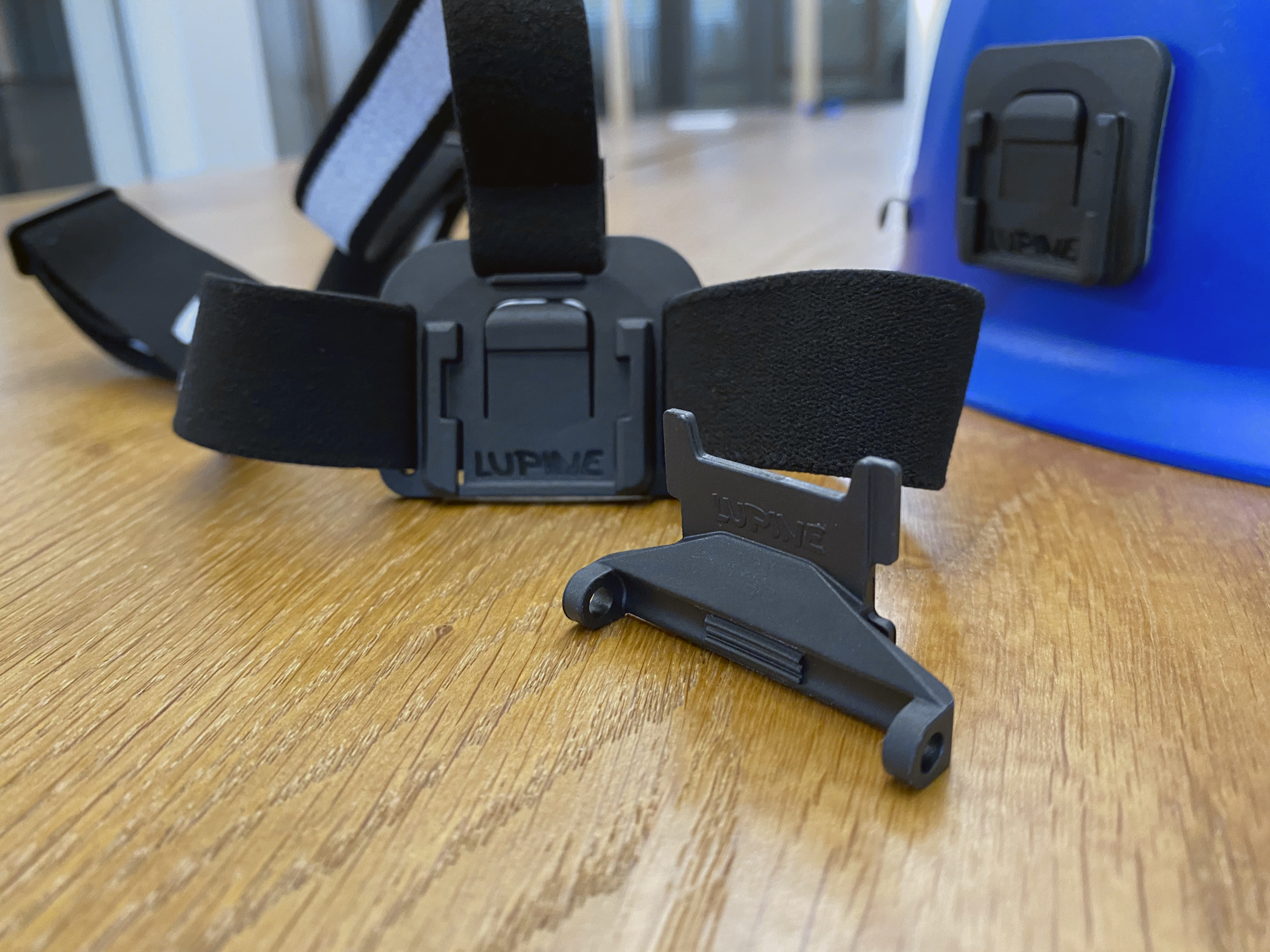 Das Stirnband der Penta ist für die meisten Aktivitäten schon sehr perfekt und kommt in gewohnter Lupine-Qualität. Die Penta lässt sich allerdings ganz einfach abschrauben und mit Hilfe des optionalen FrontClick-Adpaters an einem Stirnband mit Überkopfband oder am Helm befestigen.