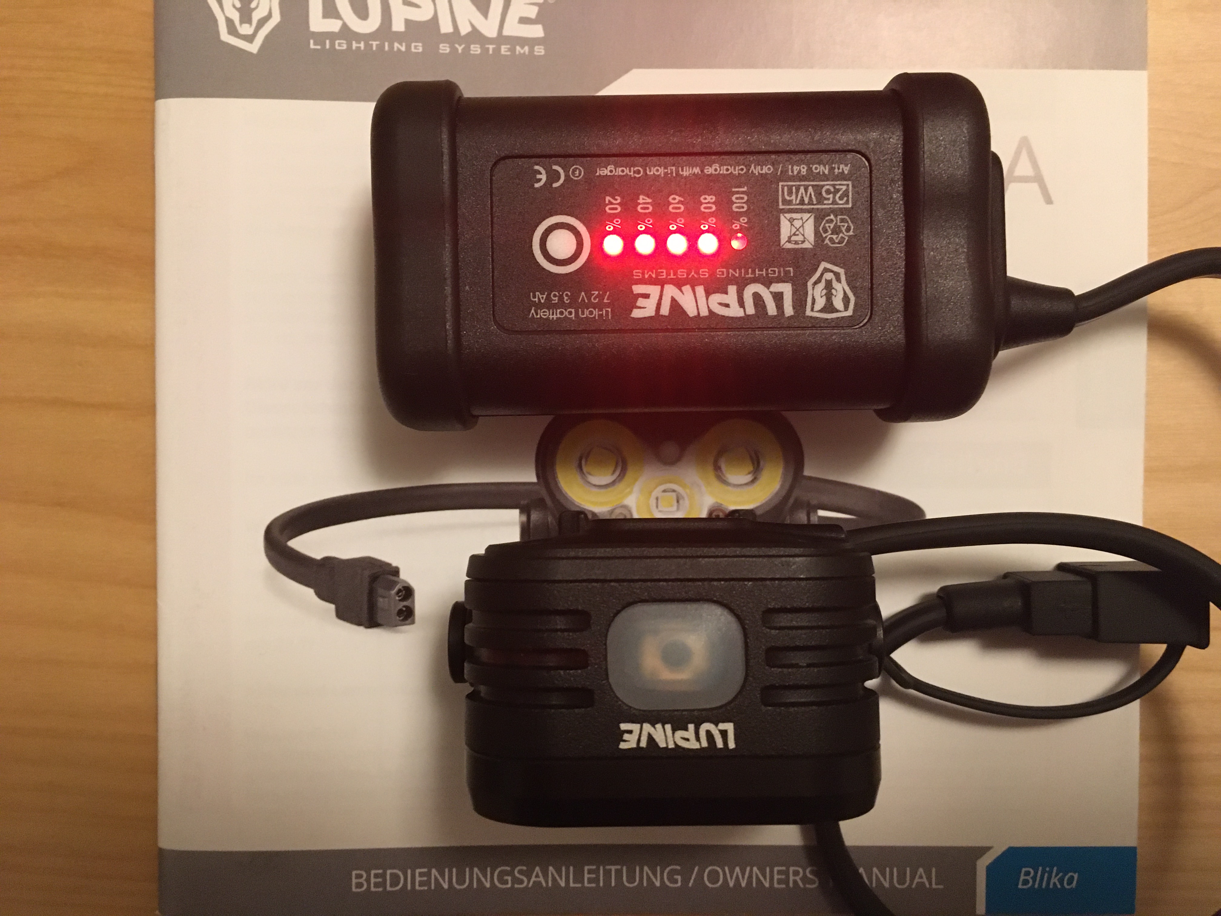 Der 3,5 AH Akku wurde bisher ungefähr 15mal aufgeladen, da ich ihn noch als Ersatzakku für eine Lupine Neo genutzt habe.